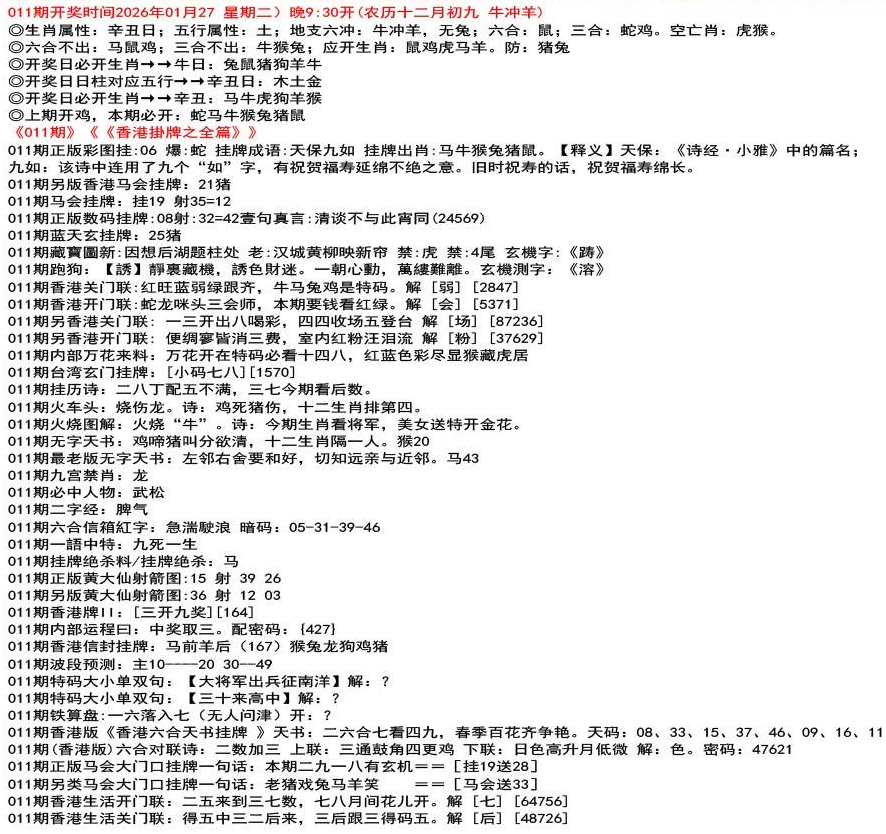 111期香港生活关门联:鸡前马后来一数,猴儿三心到娘家 解 【来】【38726】