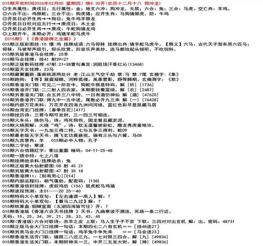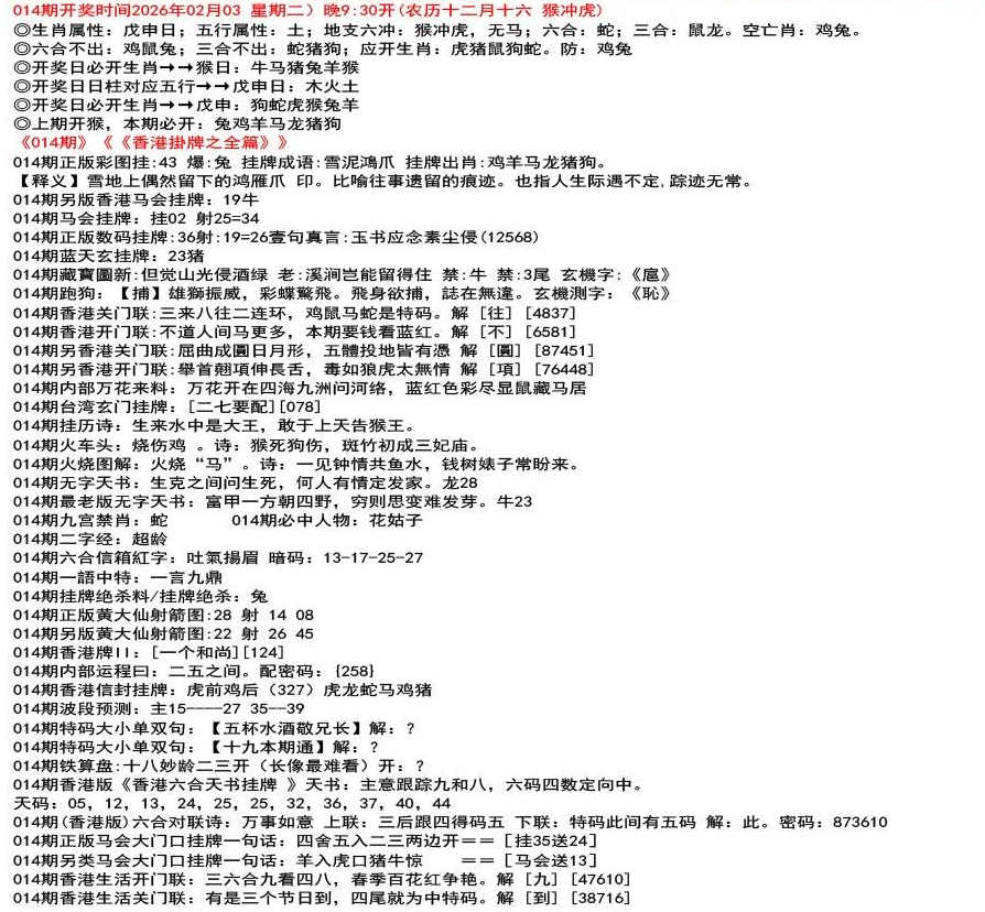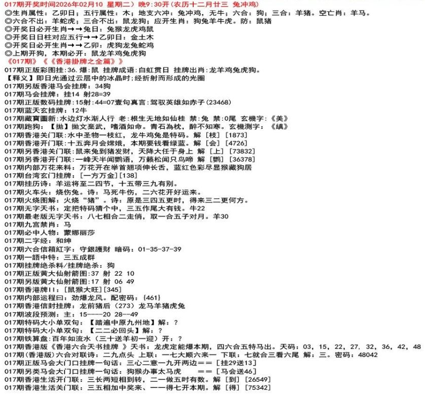 ◎六合不出:牛龙猴;三合不出:鼠蛇鸡;应开动物:羊兔猪虎狗。防:鼠马